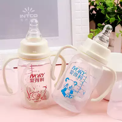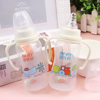 Edley bottle newborn baby baby standard caliber PP plastic bottle anti-drop with straw handle