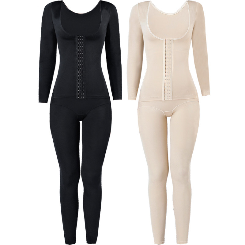 Long pants long sleeves reinforced close-up waist lifting hip-to-body shapewear, postpartum slim fit clothing tight fitting shaping underwear bungles