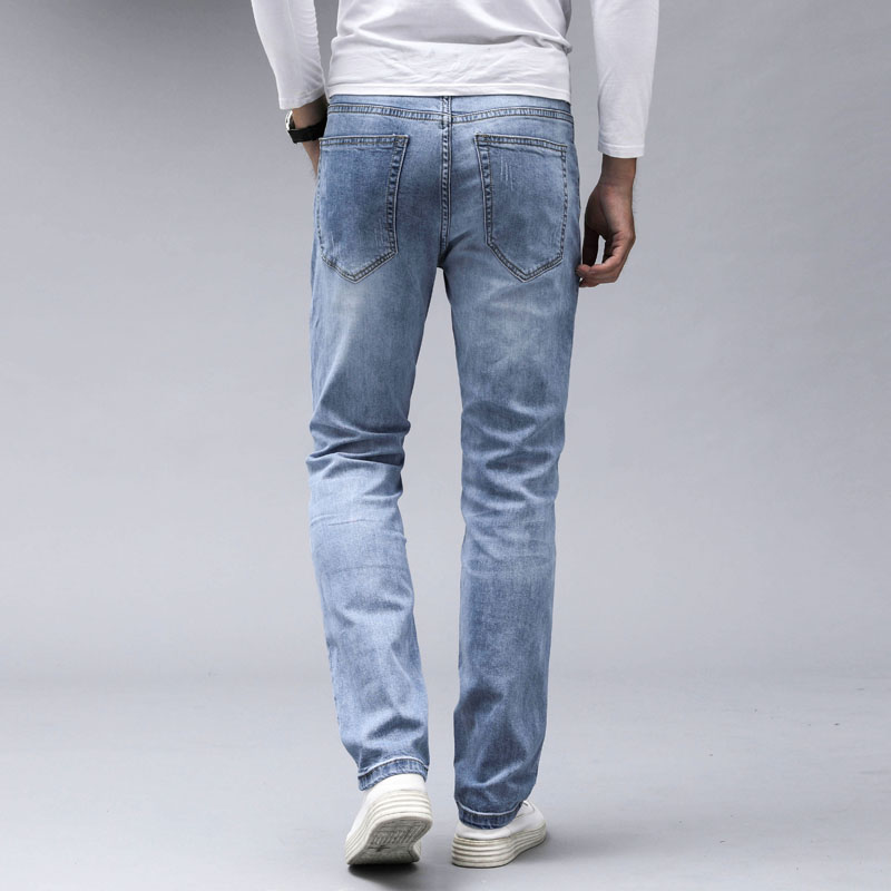 Summer thin cotton light jeans men's stretch slim straight youth polished white cotton casual pants summer