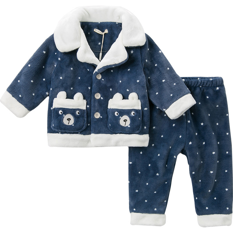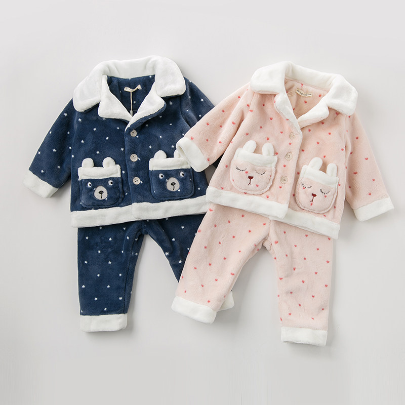 (Off Season Clearance) David Bella Baby Autumn Winter Boys and Girls Warm Home Clothing Set Pajamas Two-Piece Set
