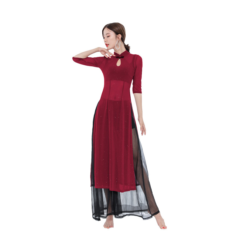 Classical Dance Exercises for female adults Wind national tennis Gauze Broadlegged Pants Long Robes Performance Suits in the Breeze Comfort-Taobao