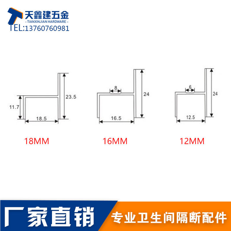Public toilet accessories hardware partition aluminum door side bar h-type aluminum alloy partition door side bar explosive style