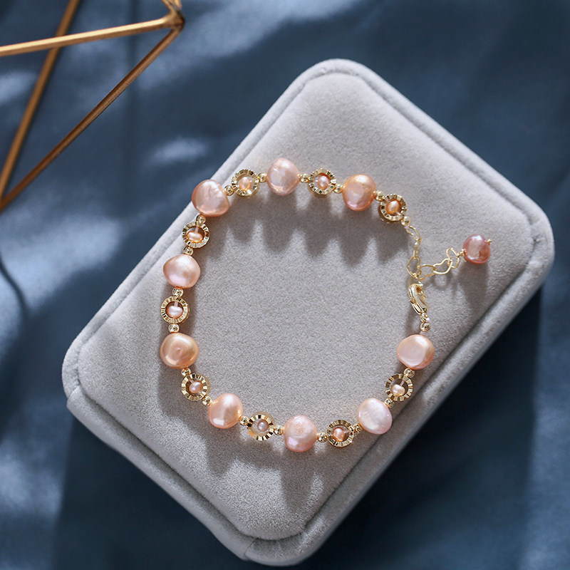Natural freshwater pearl hand Baroque shaped bead bracelet female niche design love tail chain bracelet gift