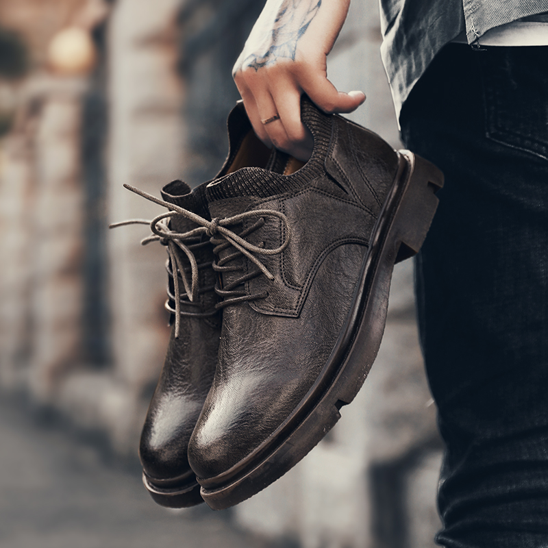 Man Casual Leather Shoes Boom Shoes Fall 2023 New Shoes Men's Korean Version Trendy Inglées Black Men's Fall Men's Shoes-Taobao