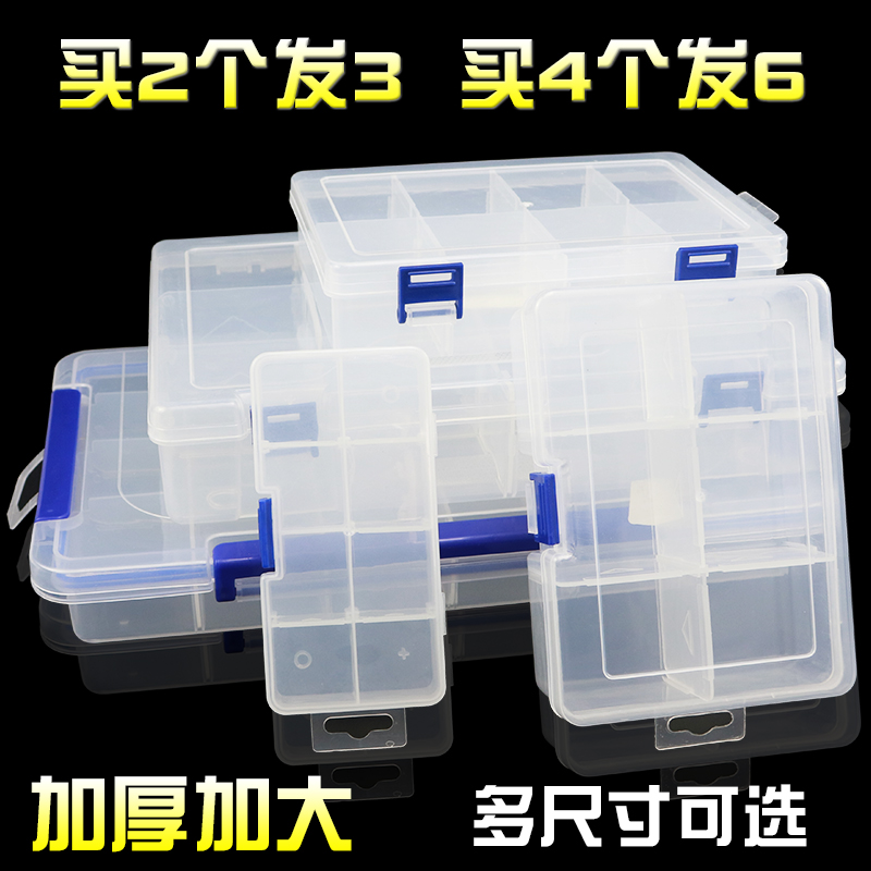 Transparent plastic parts box containing box kit components classification small screw elements box Sub-grid with lid