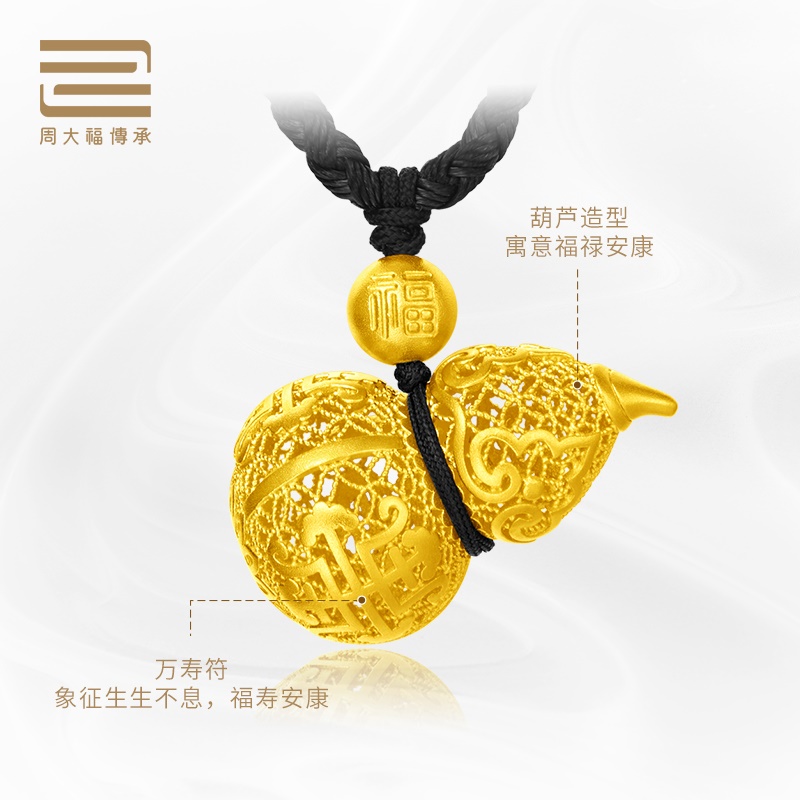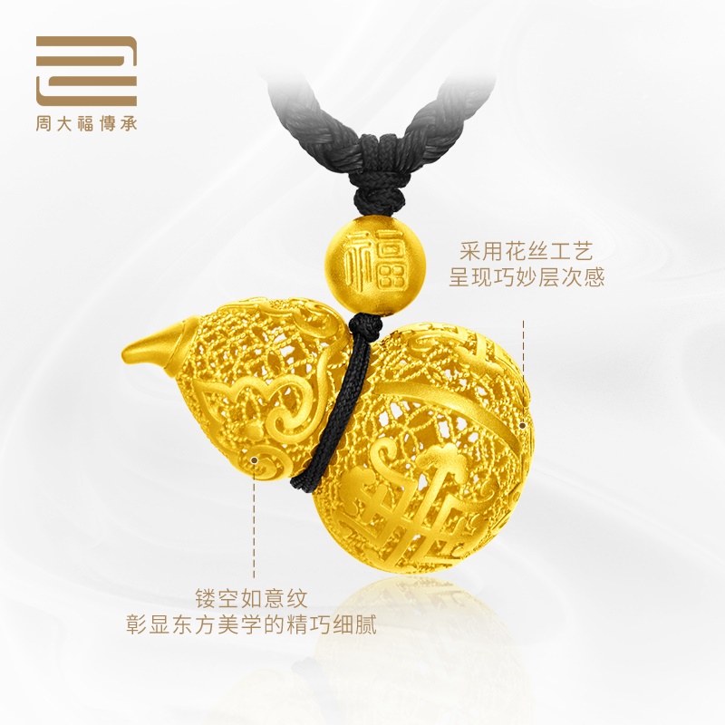 (Same style in shopping mall) Chow Tai Fook Inheritance of Harmony from Generation to Generation Hollow Filigree Gourd Gold Pendant F217067