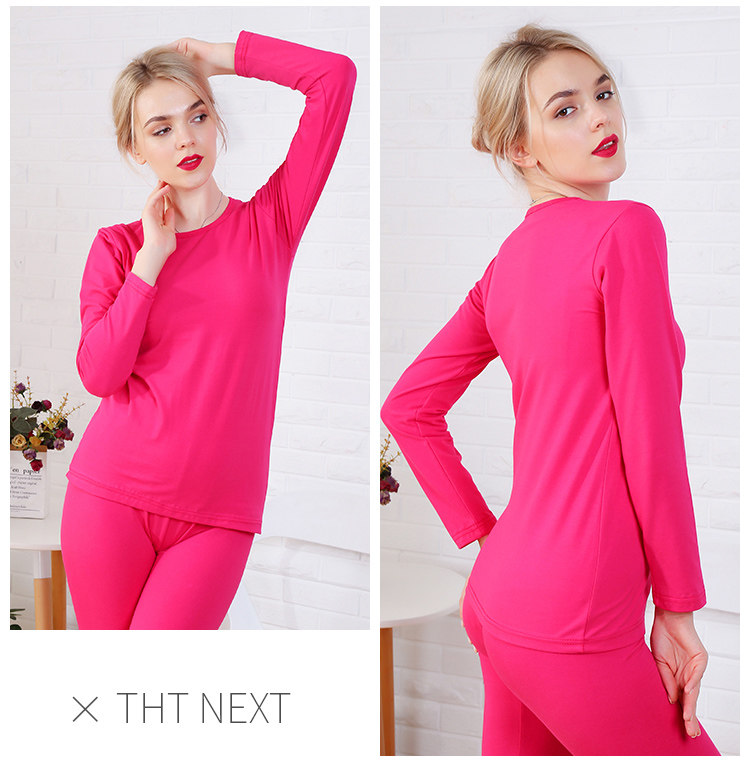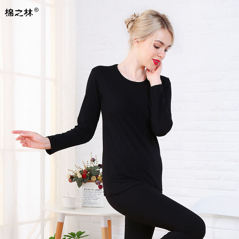 Women's Lycra cotton autumn clothes and long johns mid-collar bottoming women's solid-color cotton thermal underwear thin line clothes and trousers suit