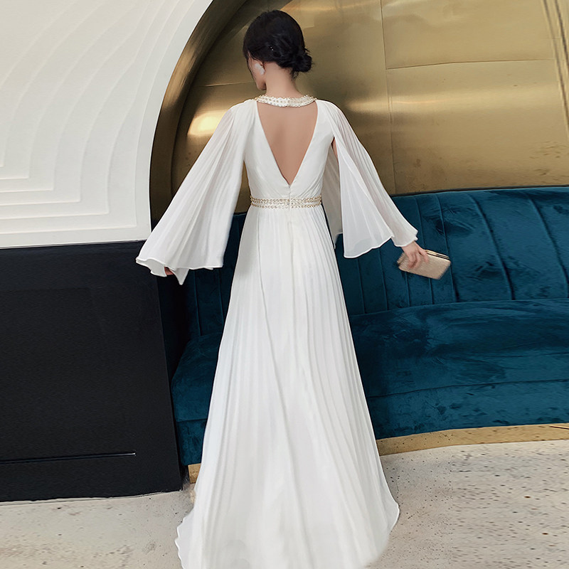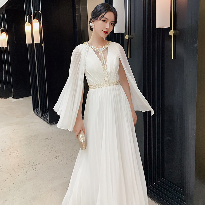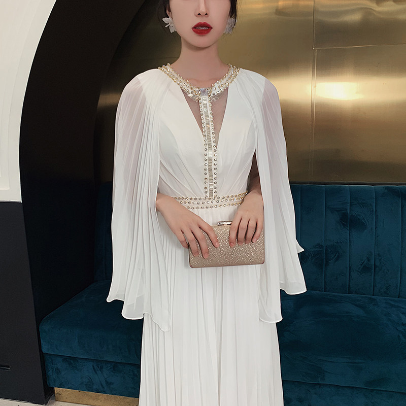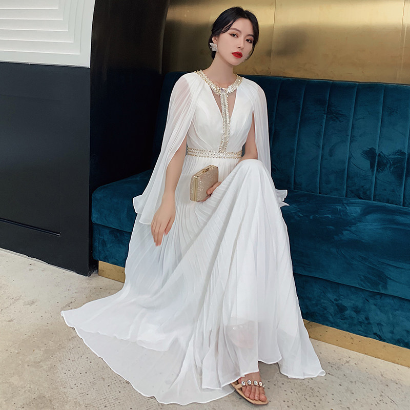 High-end dress skirt women's banquet noble temperament white elegant long version 2020 new annual meeting host evening dress