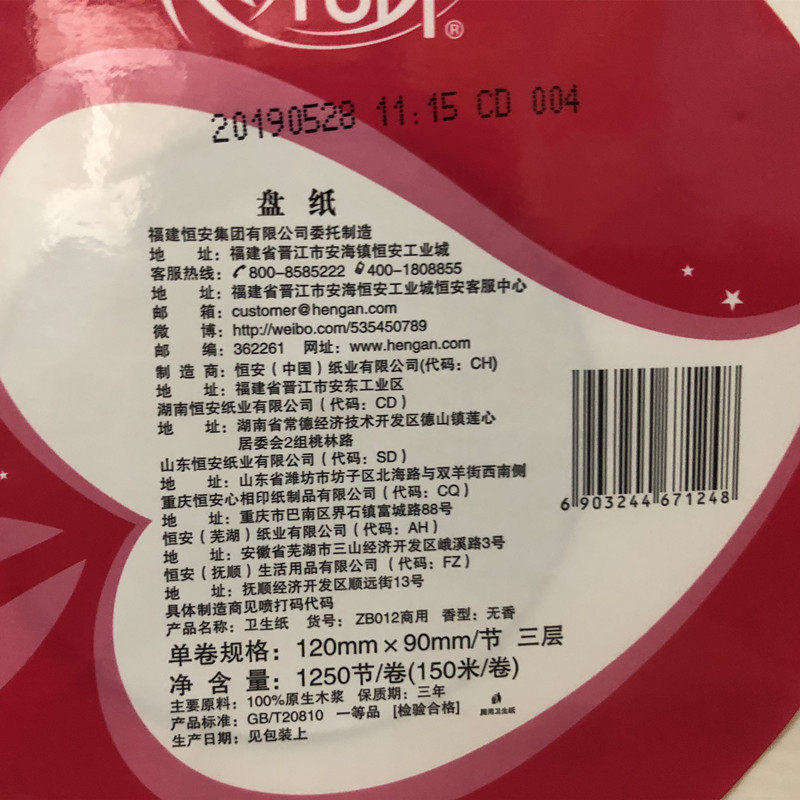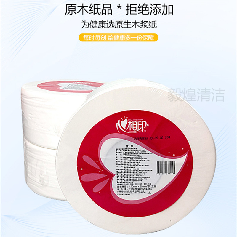 Heart-to-heart printing large roll toilet paper ZB012 three-layer public toilet paper large plate paper household special package roll paper 10 rolls