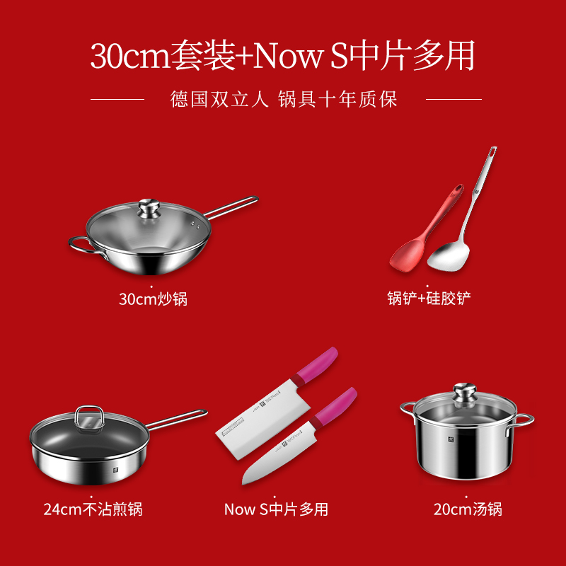 German Shuangli Ren All-steel pot full kitchen combination Frying pan steamer soup pot Milk pot wok Stainless steel pot set
