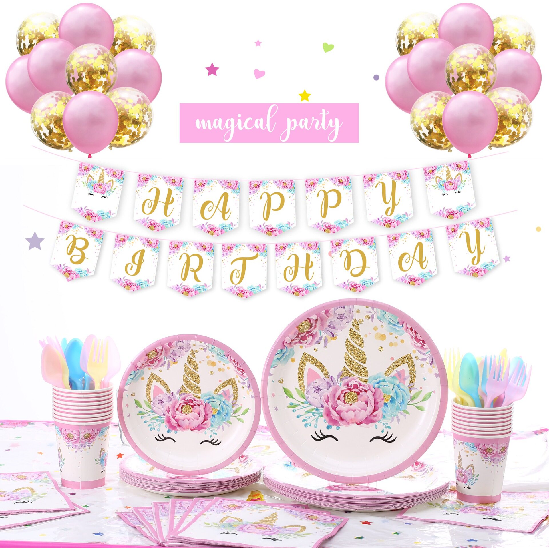 ins wind unicorn themed birthday party decorations arranged tableware Unicorn Baby Shower Party