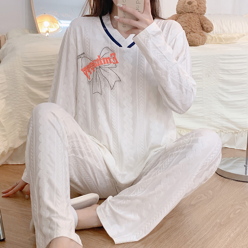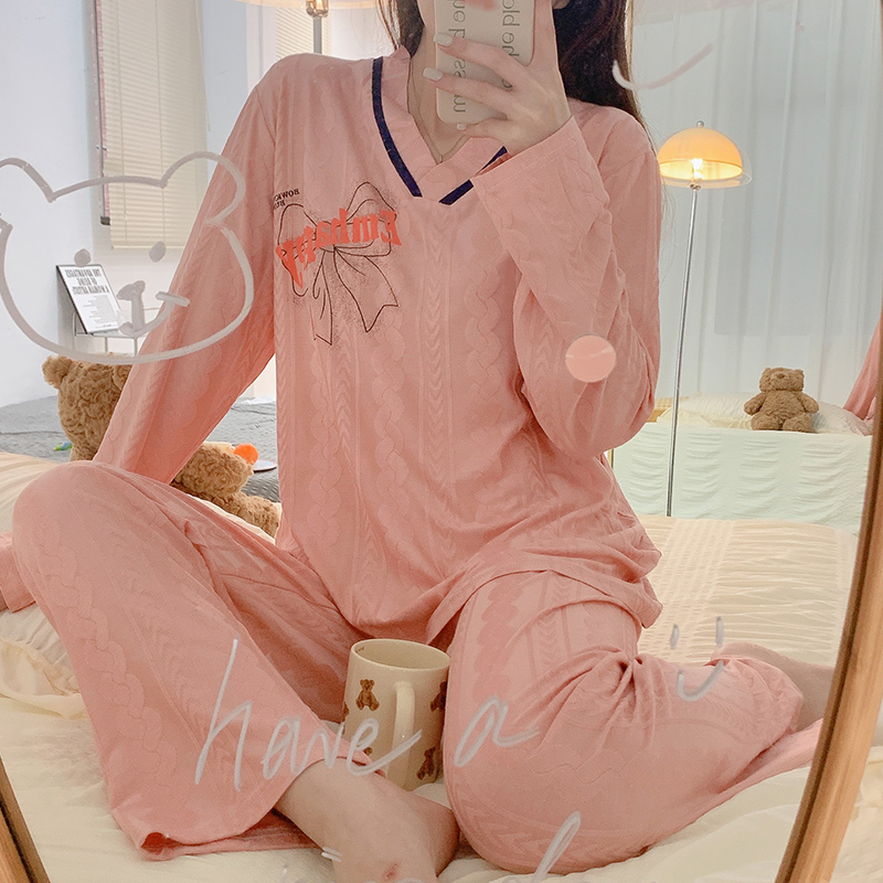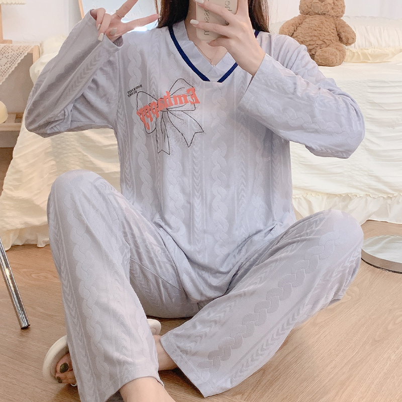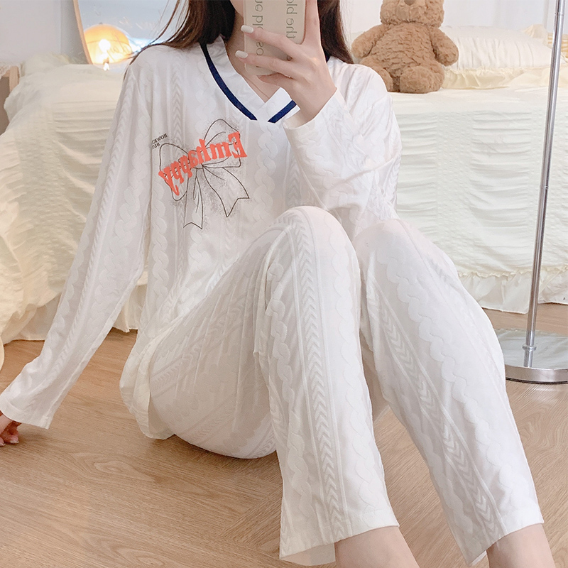 Fall and Winter Pure Cotton V-collar Nightgown Lady Sleeve Two Pieces of Cute Butterfly Knife Han Edition Spring and Autumn Clothing