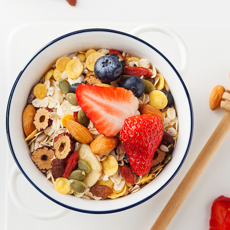 Fruity mixed cereal with a fruity blend of fruit