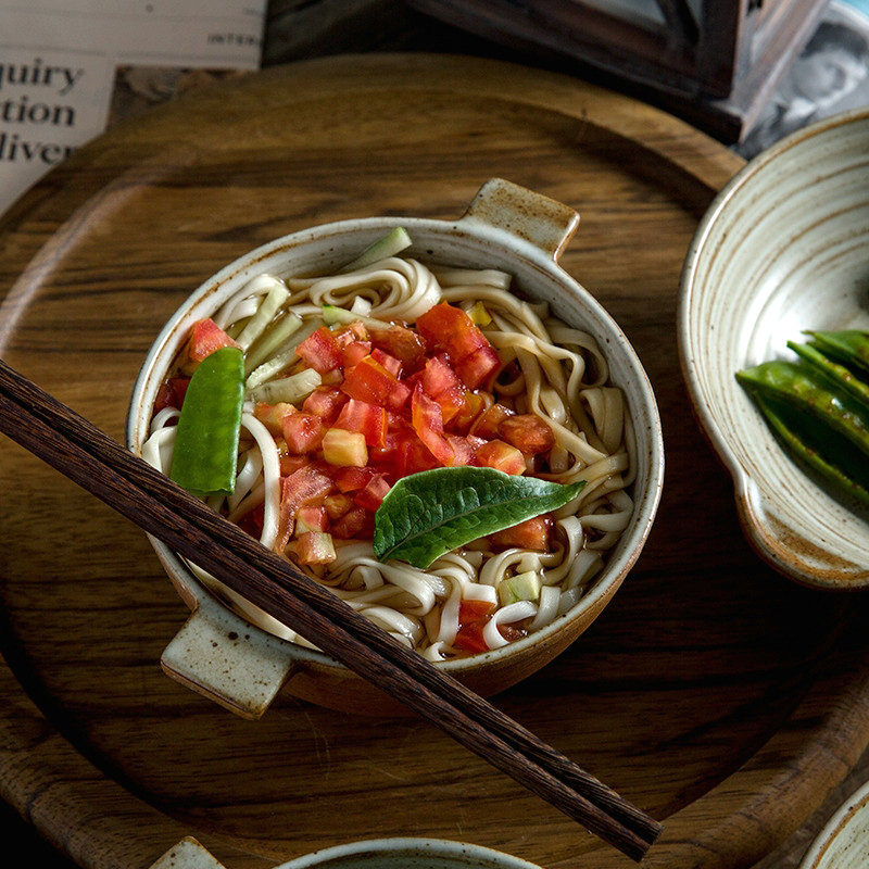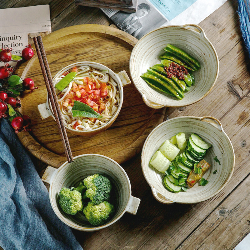 Handcrafted Coarse Pottery Day Style Double Ear Rice Bowl