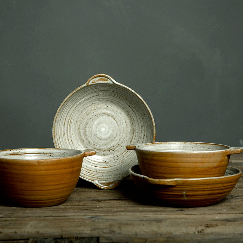 Double Ear Coarse Pottery Deep Bowl Double Ear Coarse Pottery Deep Dish Deep Bowl (1 each) Double ear coarse pottery deep tray