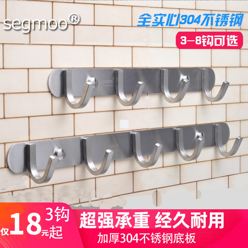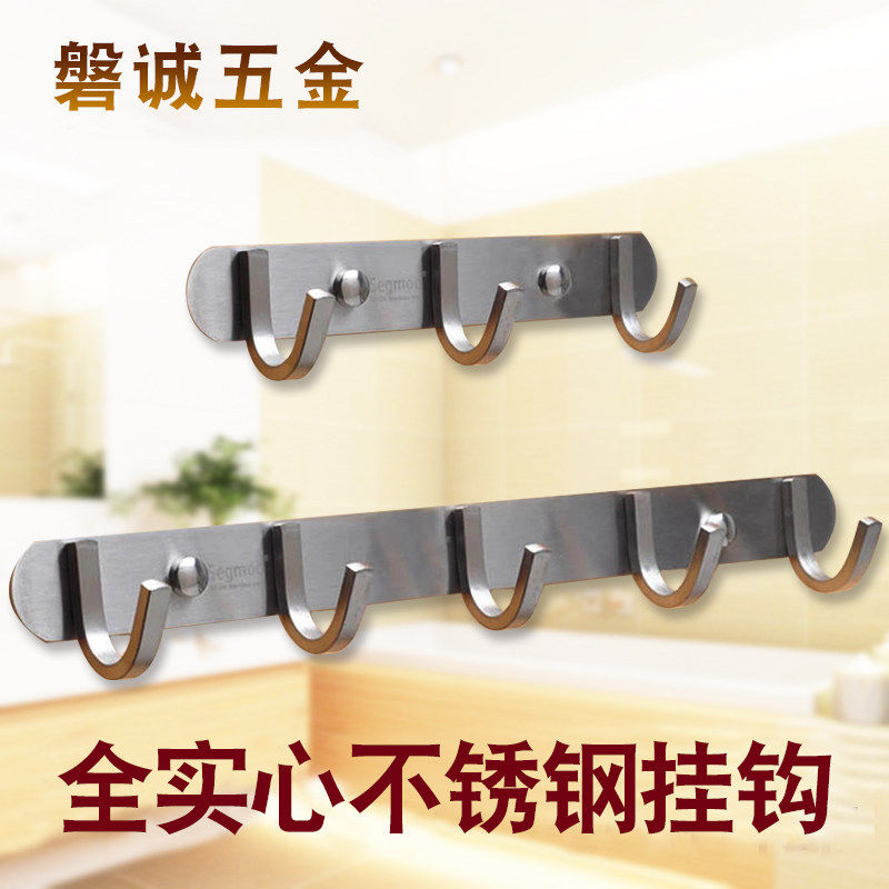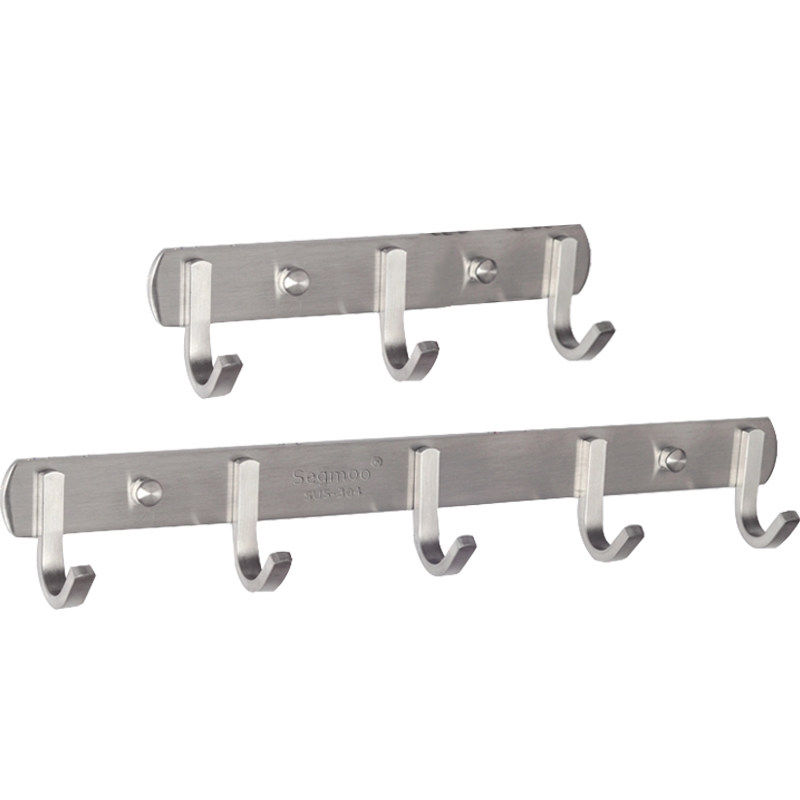304 Stainless Steel Strong Weight Punch Hole Hook Wall Fixing Solid Clothes Row Hook Bathroom Wall Hanger