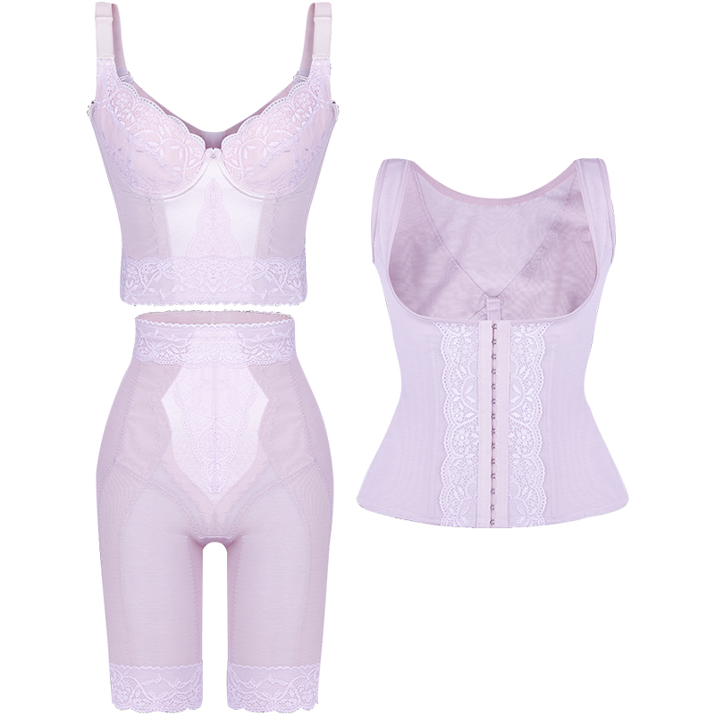 Three sets of royal complexion three sets Paris purple long bra complexion (size code message or contact customer service note) Short waist clip complexion Short bunches Complexion Pants Skin Color Long Bra Purple (ruler)