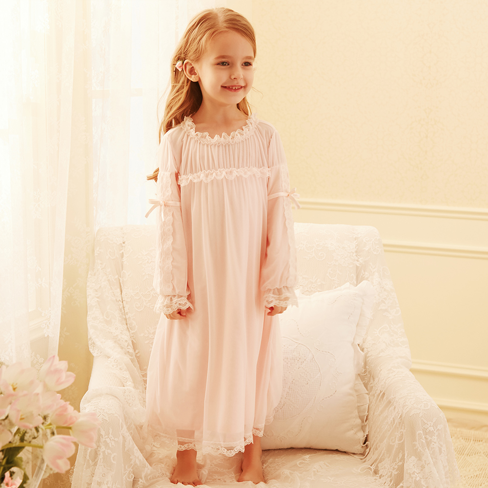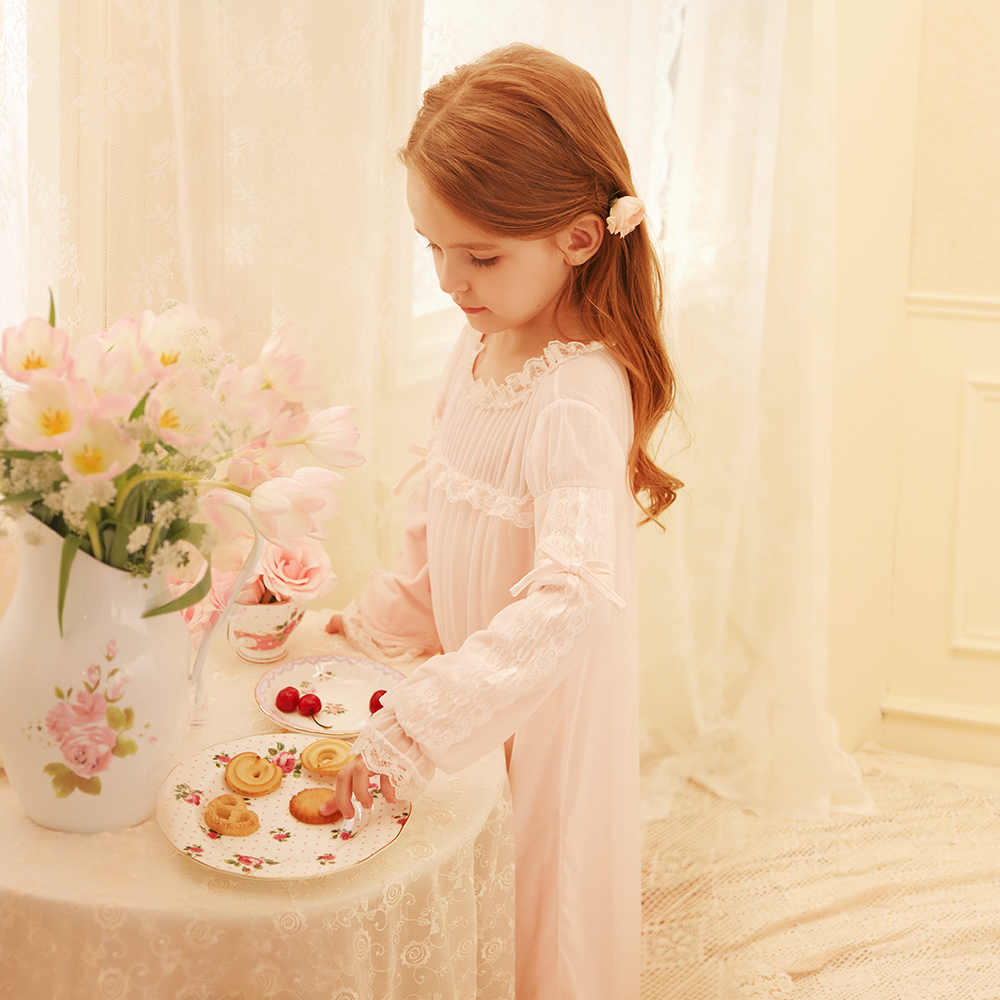 RoseTree girls nightgown princess style spring and autumn modal thin children's long-sleeved summer girl baby pajamas