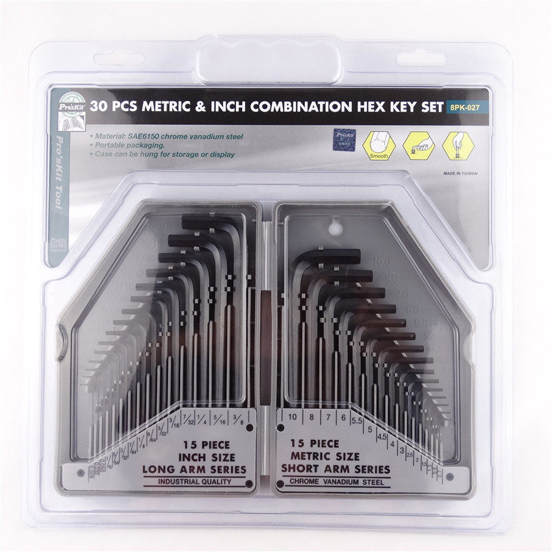 Taiwan Baogong inner hex wrench set flat head male English 30 piece set 8PK-027 hex key screwdriver