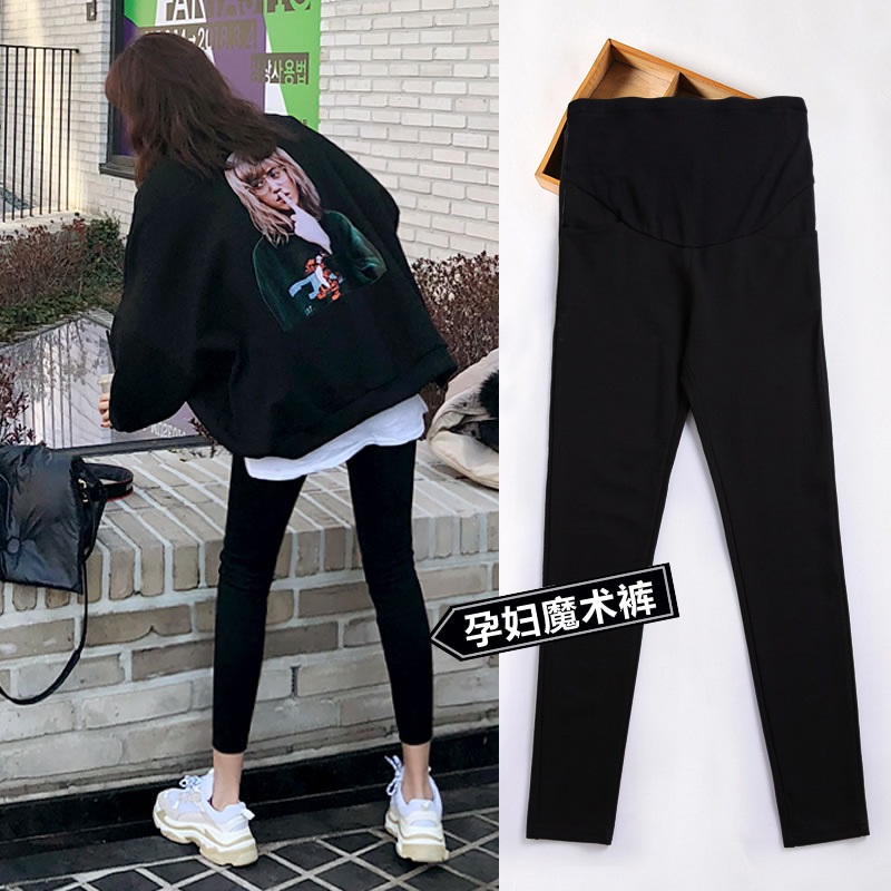 Black large size pregnant women's spring and summer clothes new inner pants women's spring and autumn thin models wear small feet outside the belly is thin tide mom