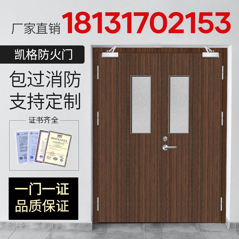 Wooden fire door Grade A B paint-free can be equipped with door cover round window steel frame wood fan fire door certificate is complete