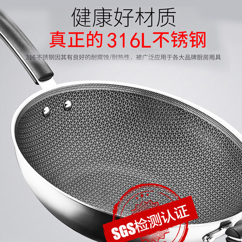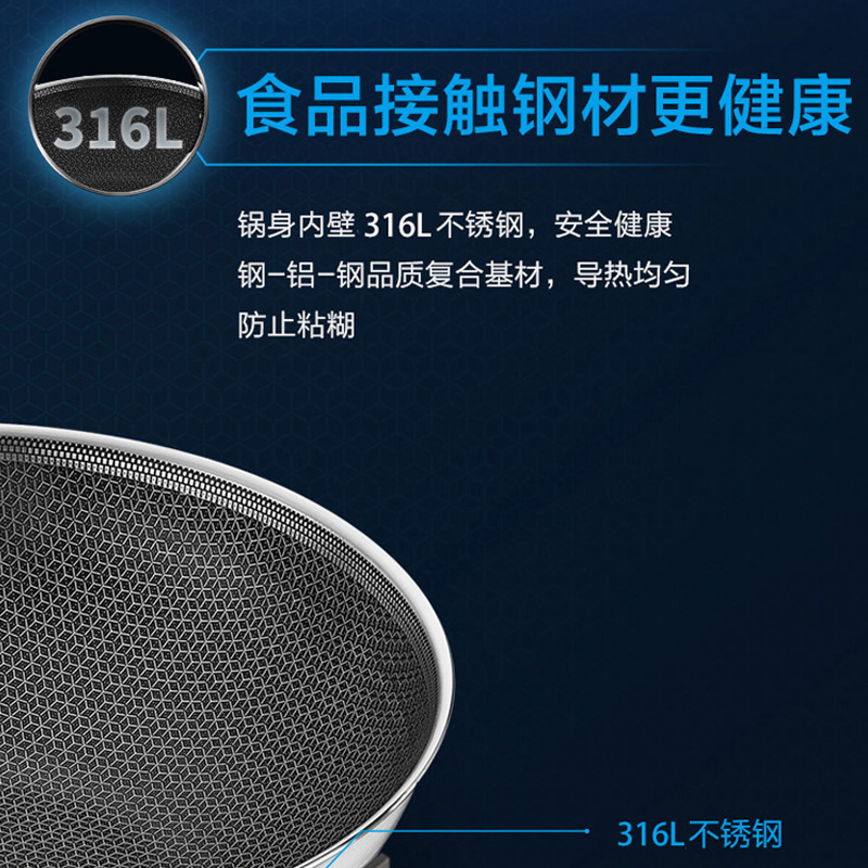 Supor wok X crystal shield 316 stainless steel anti-stick honeycomb wok household oil-free gas electromagnetic Universal