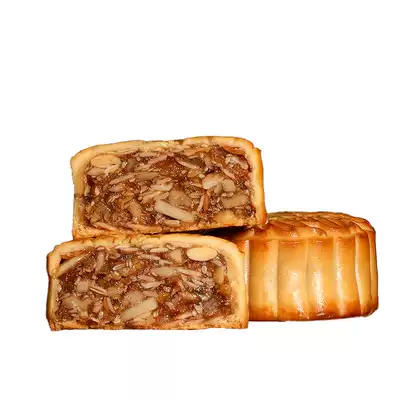 Melon seeds, amygdala, peach kernels, almond slices, white sesame kernels, fat pork, ham, white sugar, wheat flour, peanut oil, eggs, purified water, etc