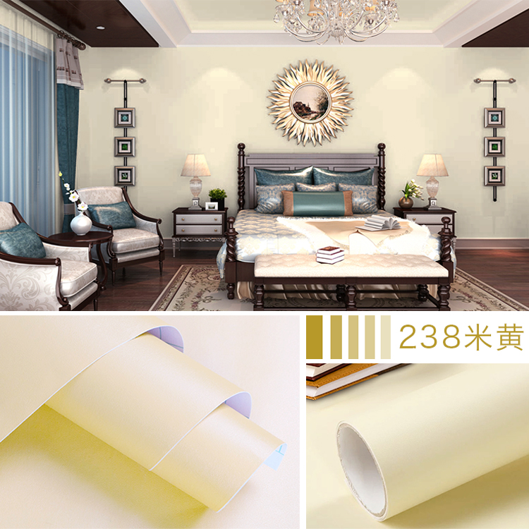Beige wallpaper self-adhesive solid color 10 meters waterproof wallpaper warm color bedroom warm net red wall sticker 80