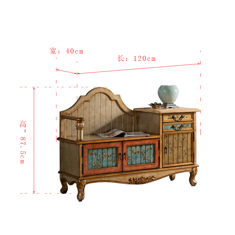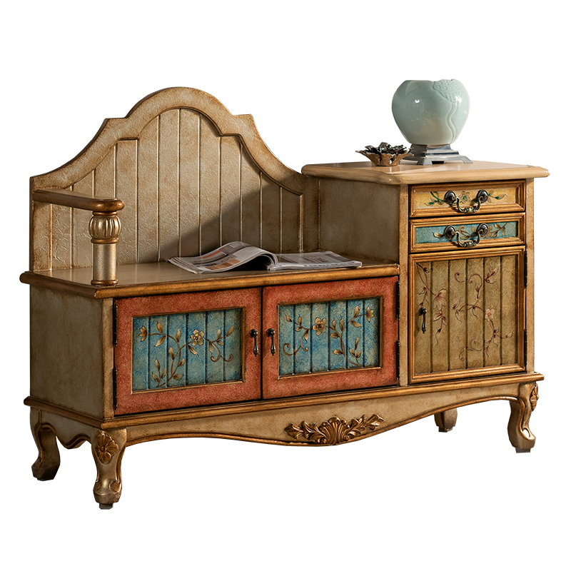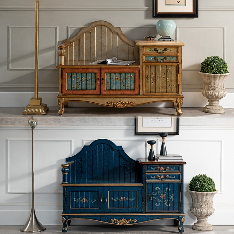 American countryside retro shoe changing stool for old home Entrance Door Shoe Cabinet Wear and stool Contained Storage Sofa stool