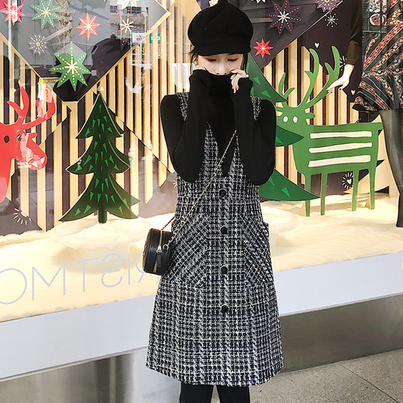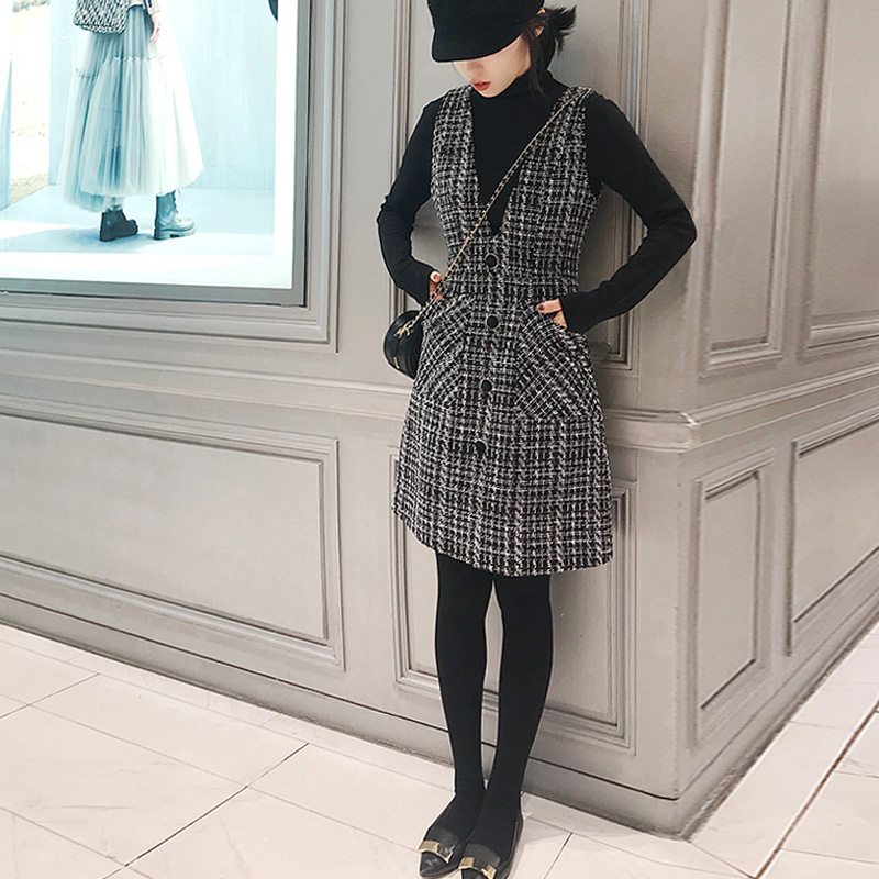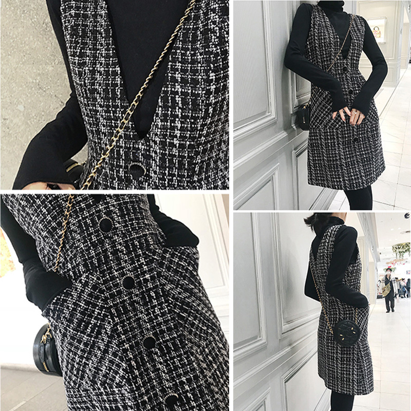 Small Fragrant Wind Pendant With Skirt Woman Autumn/Winter Temperament Famous for waistcoat Lean Foreign Pie V collar No sleeves outside wearing a waistcoat