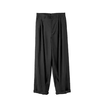 COLN's unique heavy workmanship's hems buckle loose wide-leg ribbed pants have a style for a second on the upper body