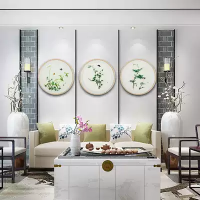 Jinwu Needle 1-4 Silk Su embroidery finished hanging painting pure handmade Suzhou embroidery painting living room porch decorative painting round frame bamboo