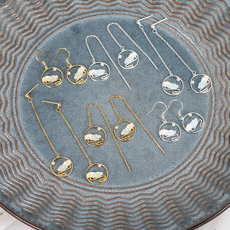 Ear needles Sterling silver cloud earrings I don't know where the new Forbidden City Super fairy magic ancestral ancient wind ear jewelry