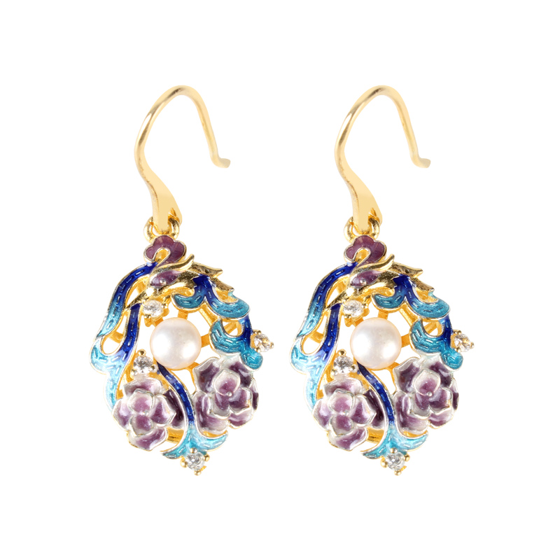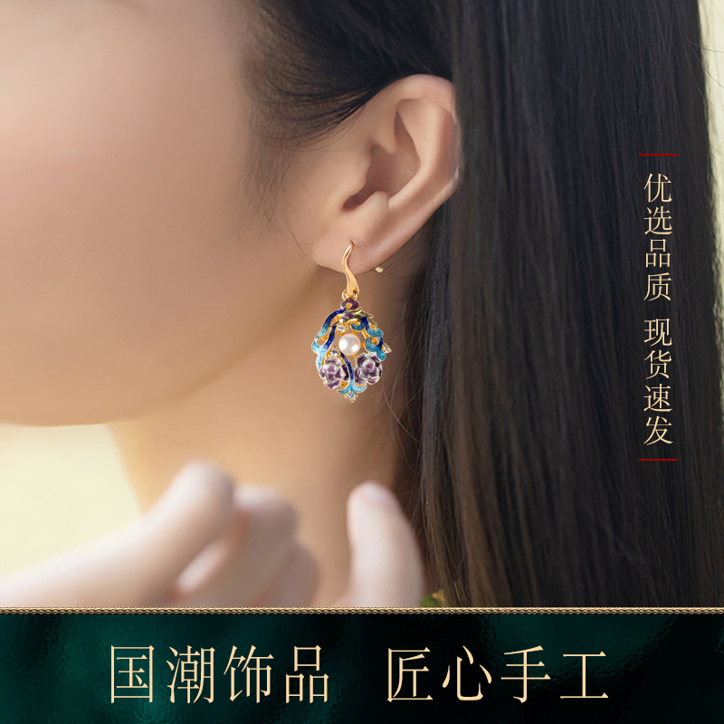 Jingtai Blue Ear Fall Pearl Earring Retro-style Audio-style ear nails compact and delicate niche wind feature ear hook