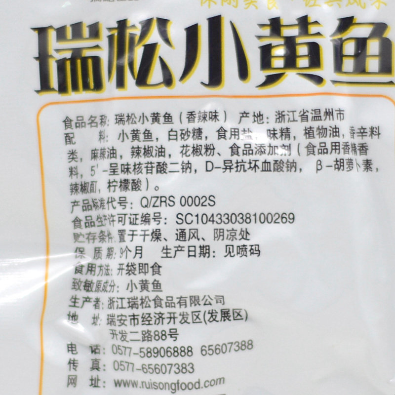 Zhejiang specialty Ruisong small yellow croaker 500g spicy barbecue crisp 3 flavor optional open bag ready-to-eat seafood snacks