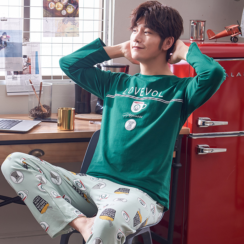 Men's Sleepwear Long Sleeve Pure Cotton Spring Autumn Season Youth Casual Male Style Casual All-cotton Home Conserved Suit Winter Extras