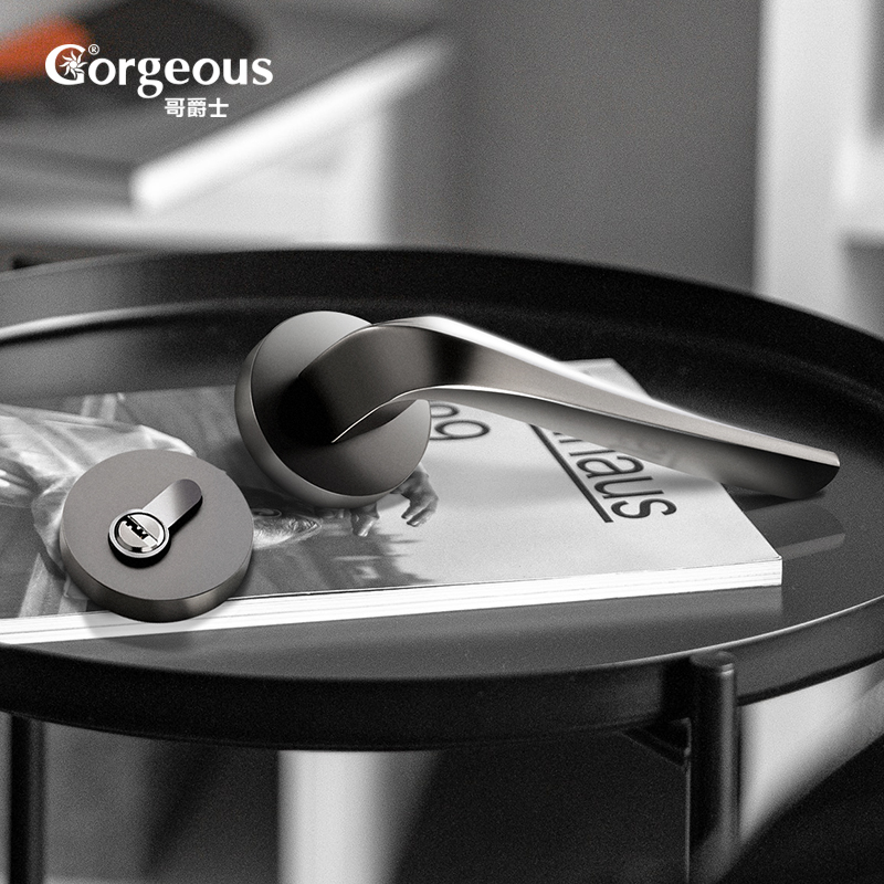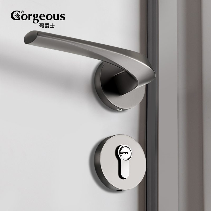 Gojazz Eurostyle Indoor Room Door Lock Modern Minima Two-piece Magnetic Suction Wire Drawing Grey Bedroom Door Handle Silent Lock