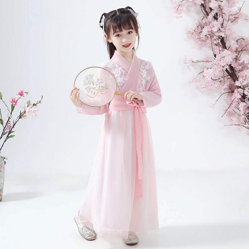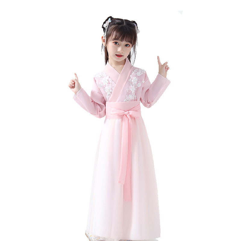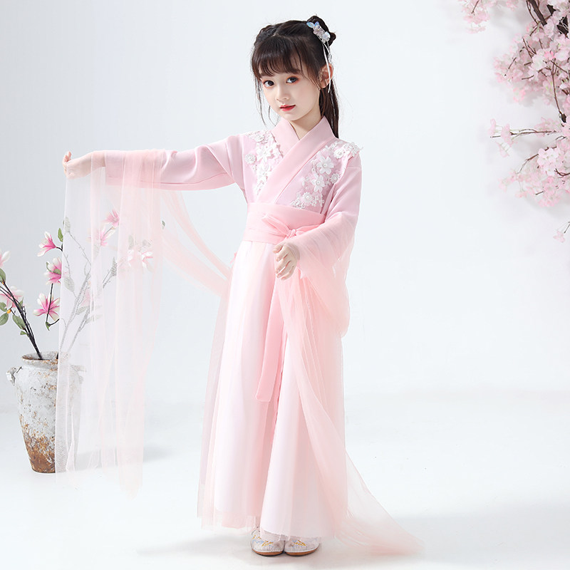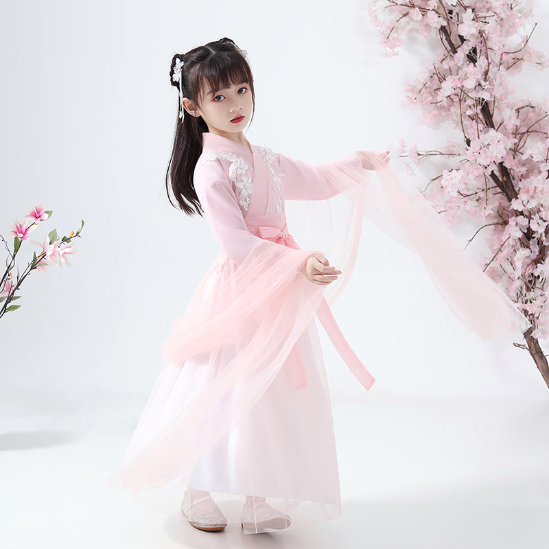 Girls Hanfu Kimono dress Super Fairy Spring and Autumn children's costume Fairy elegant Cherry Blossom Chinese style Tang dress Girl dress