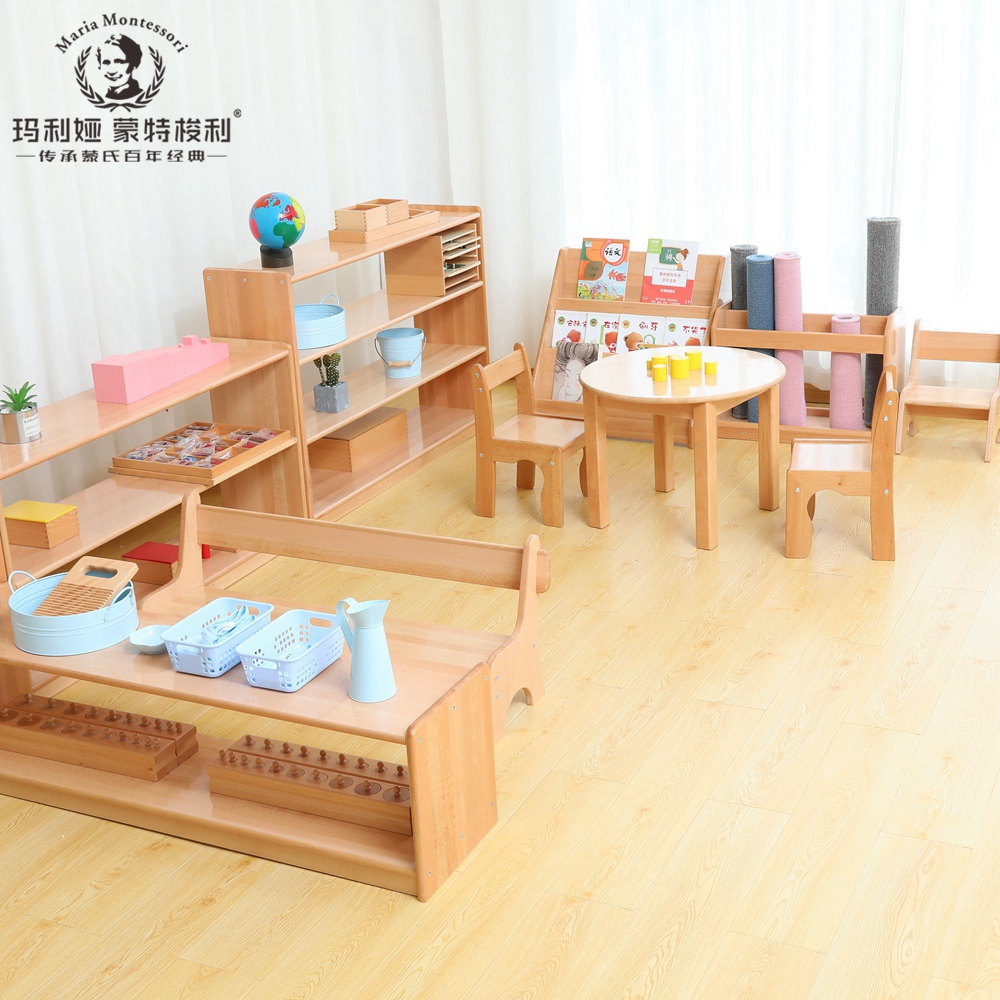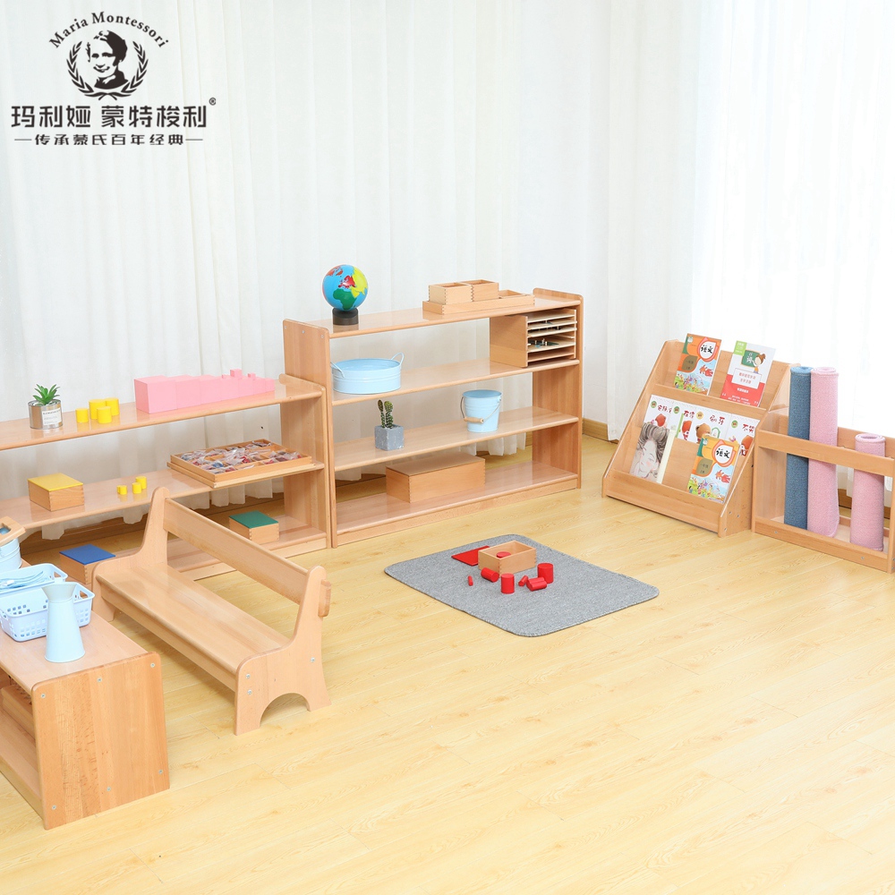 Nursery Hooded Teaching Aids Cabinet Beech Wood Solid Wood Children Toys Disposal Cabinet Storage floor Shelf Area Corner Cupboard Furniture