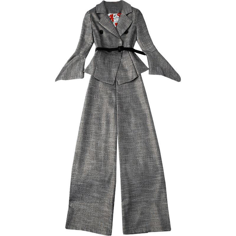 Early autumn Western-style fashion temperament professional bell-sleeved suit suit with a sense of falling thin wide-leg pants two-piece suit female