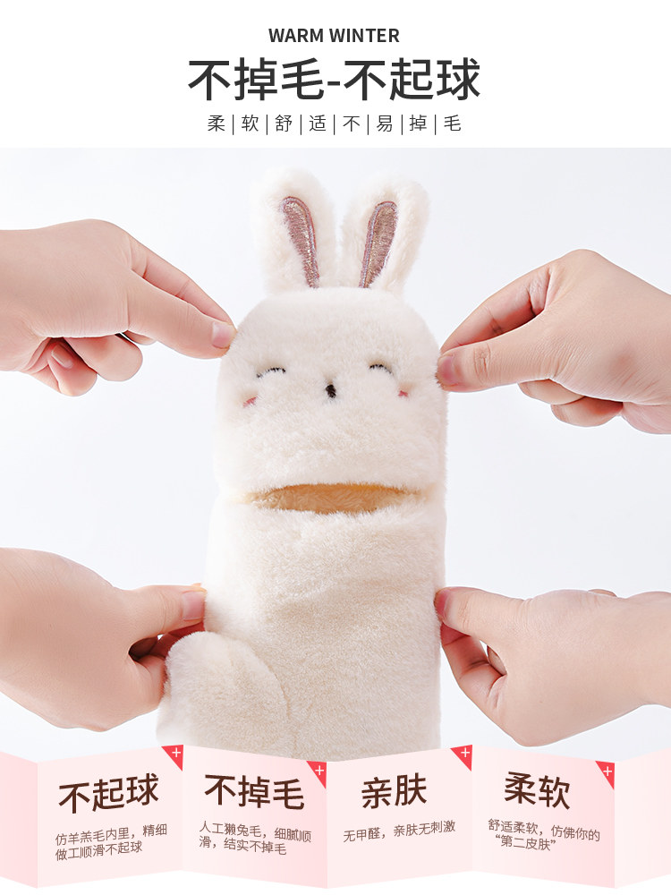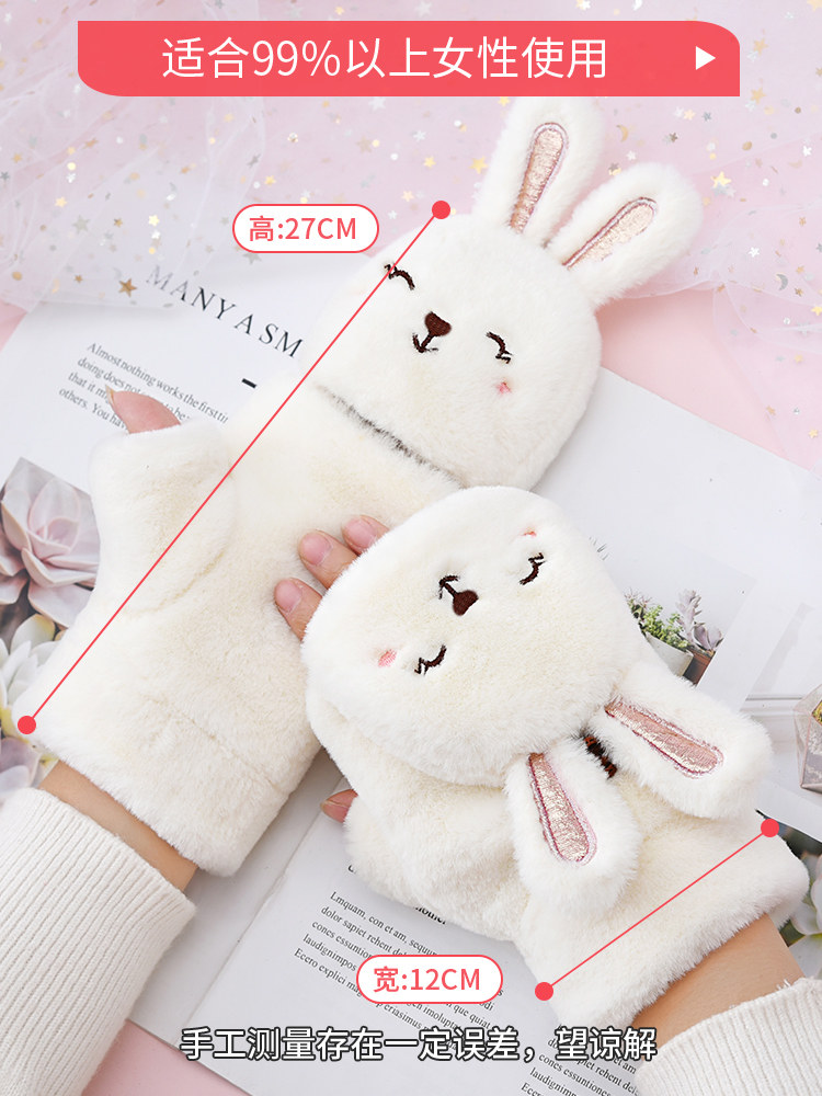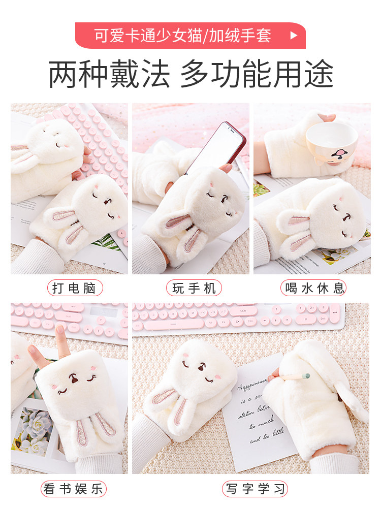 Half-finger gloves women's winter warm winter velvet cute winter student Korean version of Japanese cartoon thickened cold