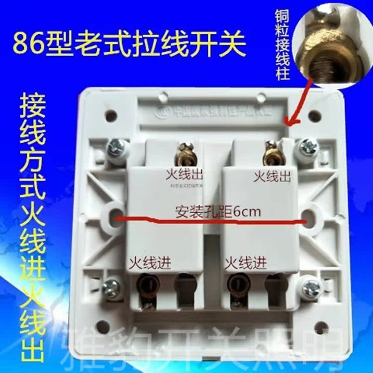 Factory direct sales Vintage Wire Pull Switch 86 Type Double Zip Line Switch Wall Pull Cord Switch Old Style Pull Cord Switch