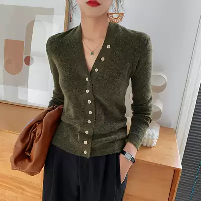 Custom alpaca velvet V-neck retro slim knitted cardigan women's short autumn new sweater long sleeve small coat top