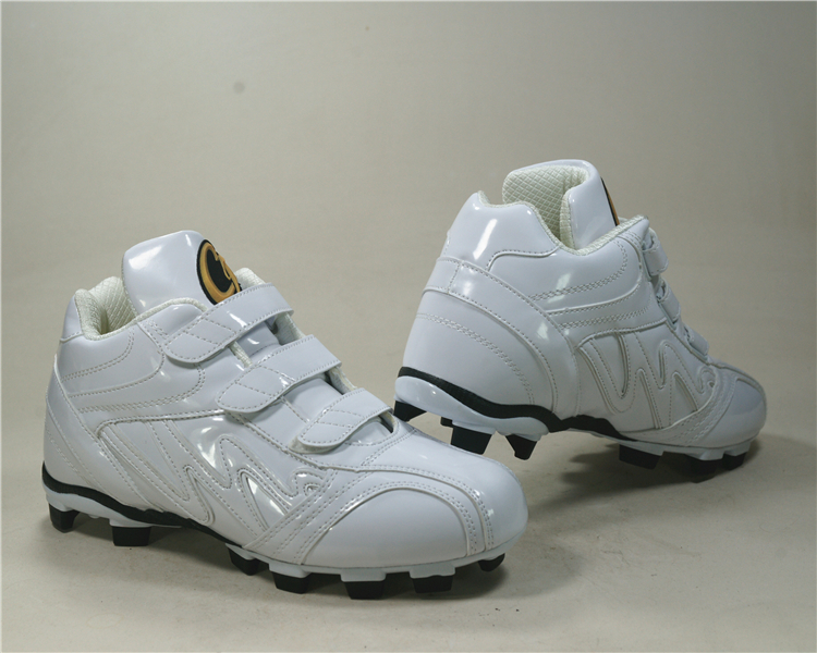 Spot factory direct sales baseball shoes, softball shoes, formal field game rubber spike shoes, Velcro mid-top white