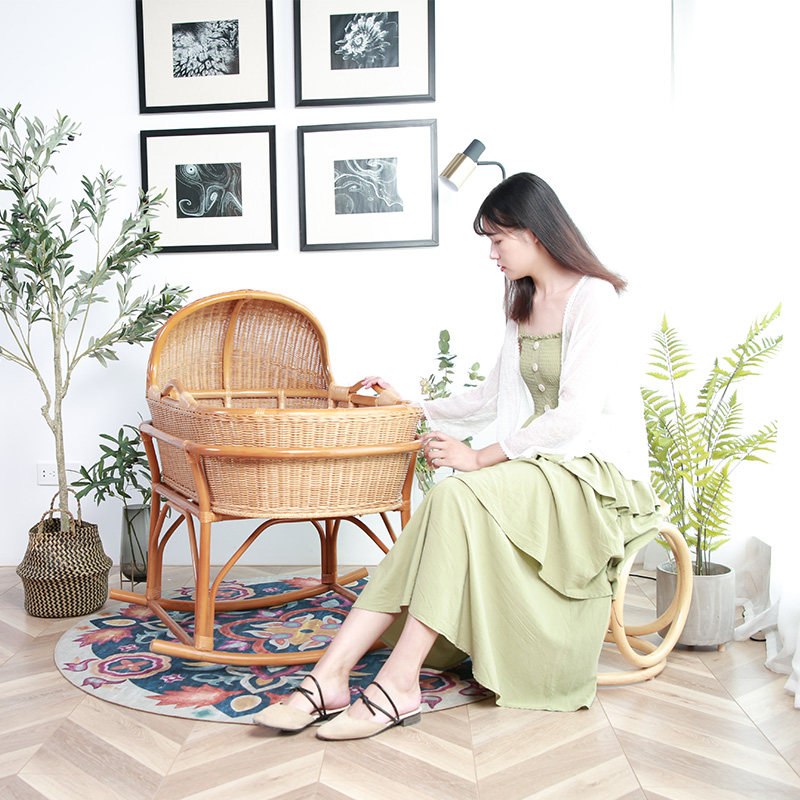 Guifan handmade rattan woven environmental protection rocking chair cradle Traditional baby cradle bed Baby bed Baby bed Rocking bed baby