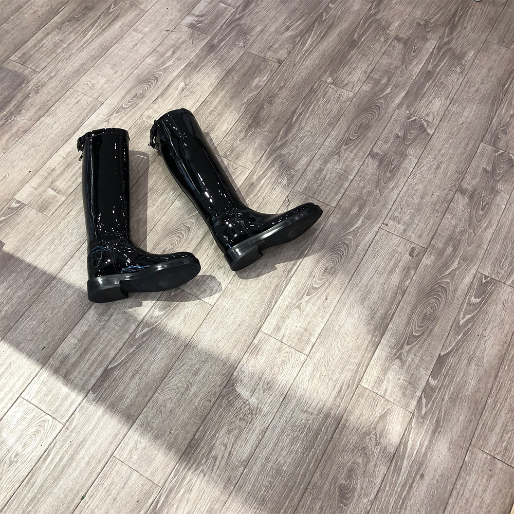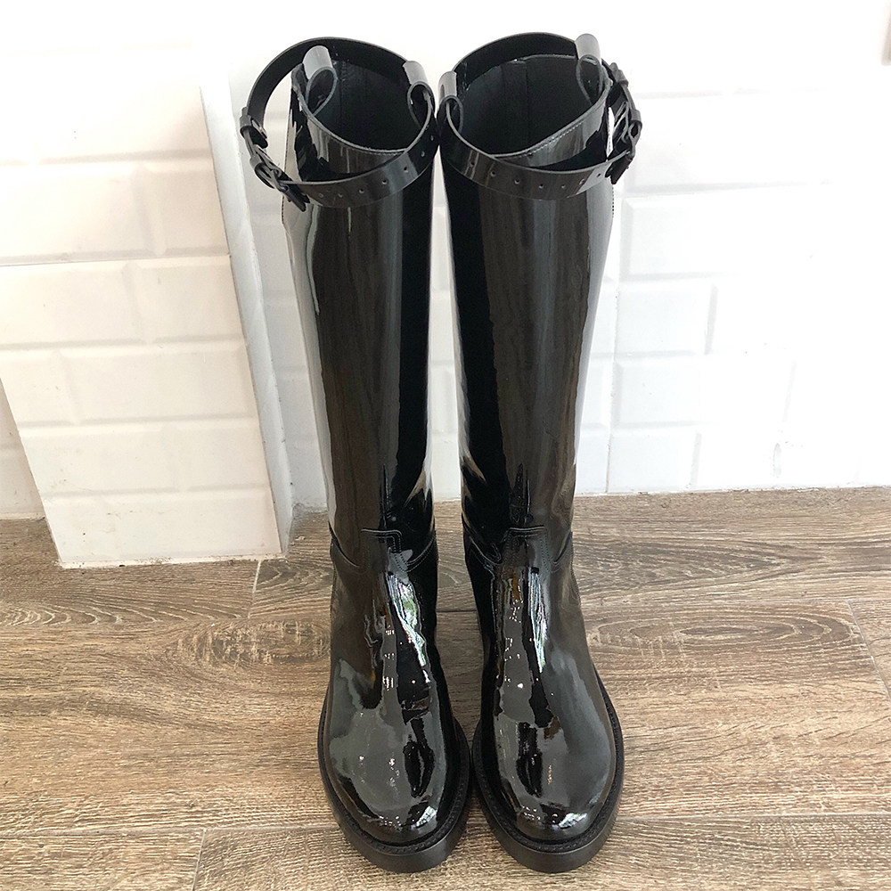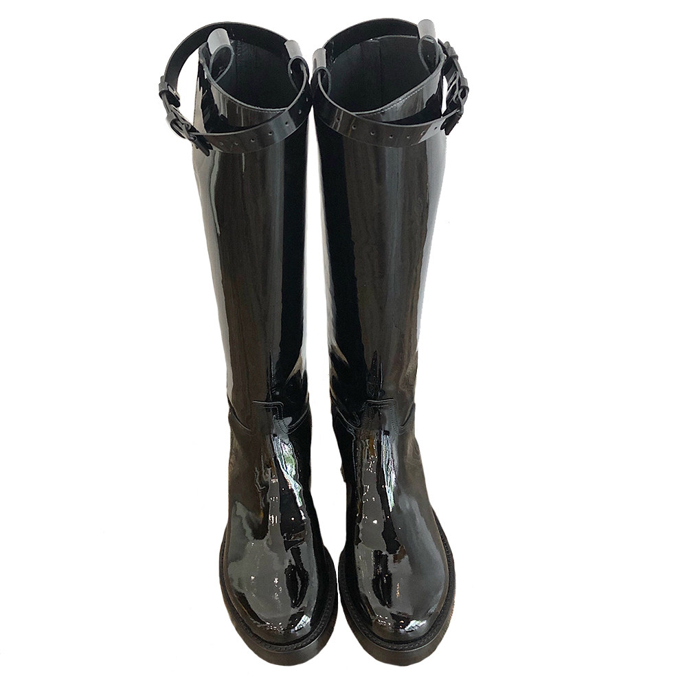ann new (insomnia) bright lacquered leather high cylinder long boot female flat leather horse boot riding boots rough heel
