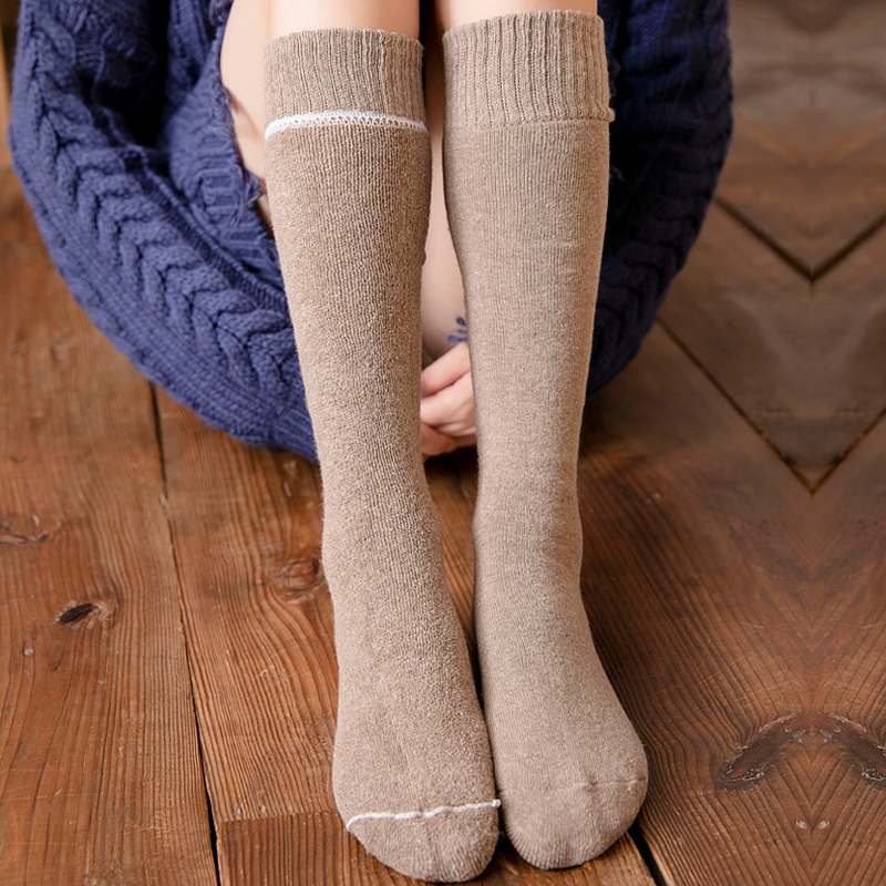 Calf socks women's autumn and winter plus velvet high socks thickened to keep warm half ins black knee-length towel stockings trendy