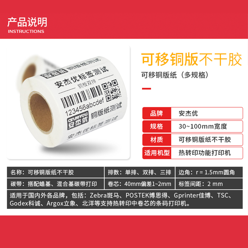 Transportable copper version paper adhesive easy to tear label furniture without glue Customized roll 60 * 40 Scar-Free Photocopying Paper