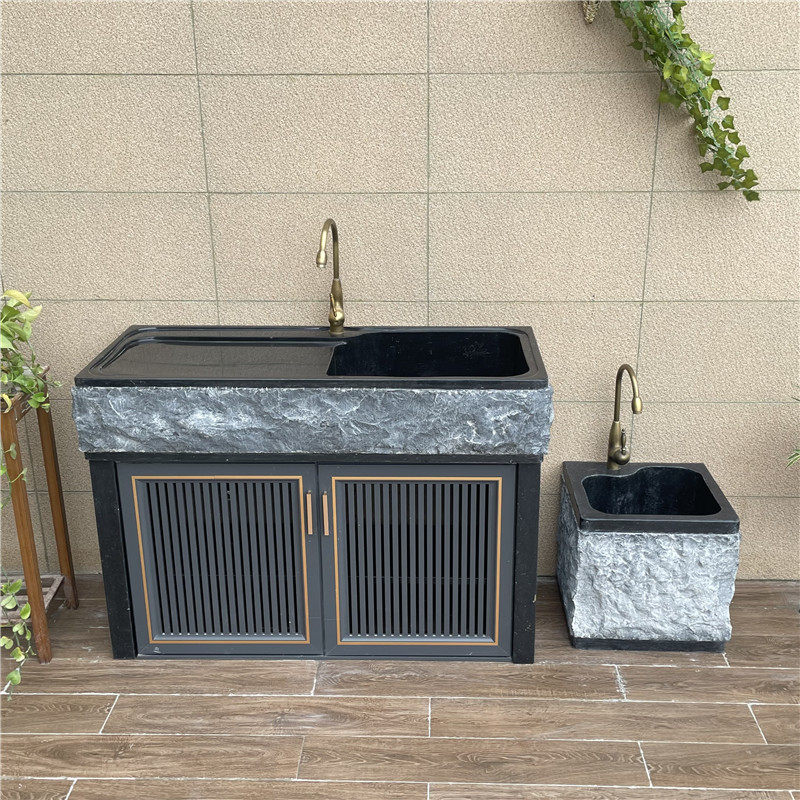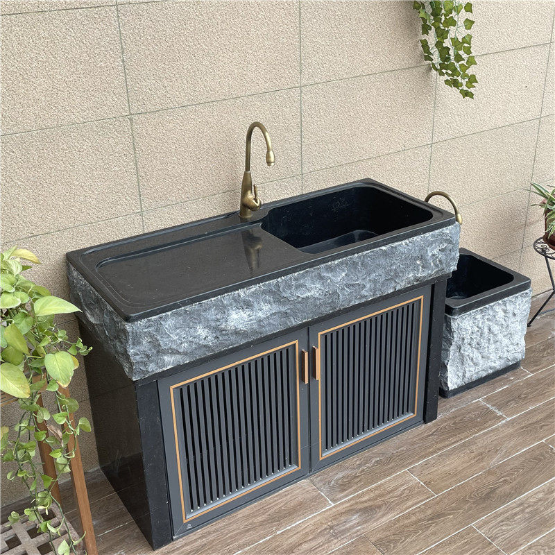 Outdoor marble laundry pool balcony sink with washboard natural stone integrated laundry table basin outdoor hand wash pool-Taobao