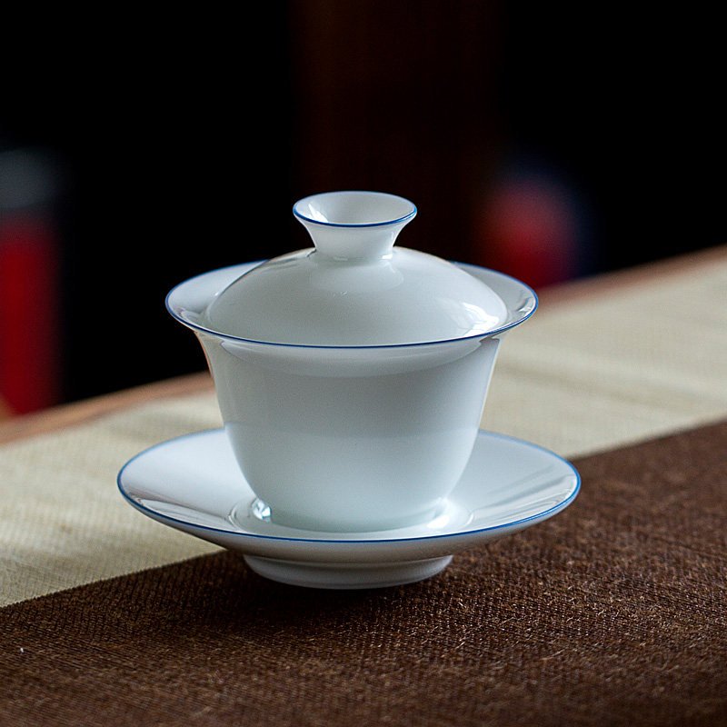 Custom Defied White Porcelain Home Hand Grip Bowl Tea Set Set Ceramic Cup Small Number Sweet White Thin Tire Three Only Cover Bowl Tea Cup